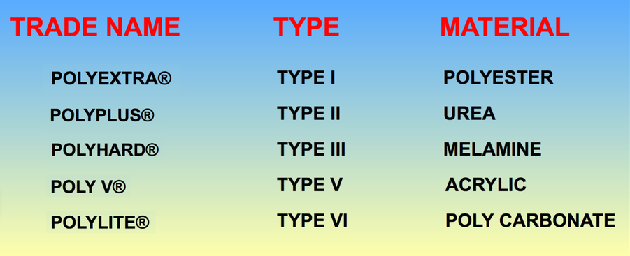 PolyExtra - PolyPlus - PolyPlus Prime - PolyHard - Poly V - Polylite - BondBlast - BondBlast Prime - QuickStrip A - QuickStrip G - QuickStrip VGA - SteelMagic - Magic II - MoldBlast - WheelBlast - Aerospace Superstrip - Aerospace Superstrip-A - PowderBlast - Aluminum Oxide - Glass Bead - Glass Frit Plastic Media